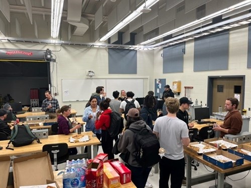 Tuesday, October 17th, SMP Engineering headed over to the NAIT campus to partake in the Electrical Engineering Technology (ELT) program’s Tuesday Talks series. Although NAIT’s ELT program has a long-standing annual Industry Night, regularly attended by SMP, Julie Watton, the Academic Program Chair for the ELT program, noticed a need for students and industry to connect in an informal setting. Started in 2022, Tuesday Talks invites representatives (often NAIT graduates themselves) of local firms to converse with first and second semester students at the campus after hours.