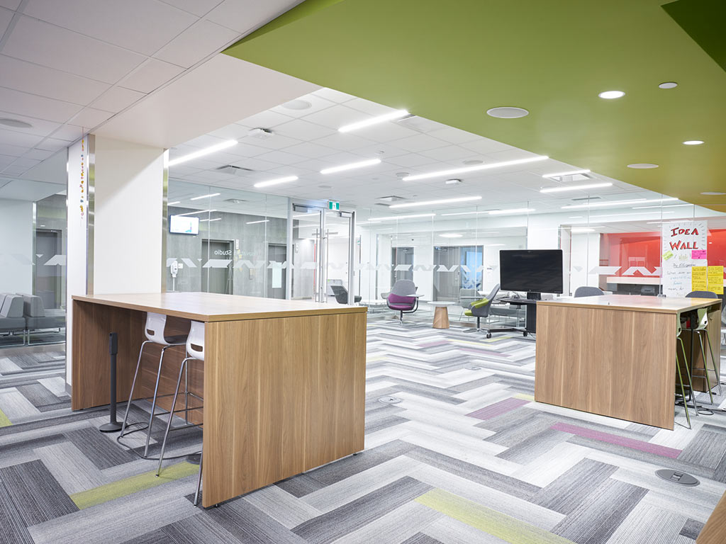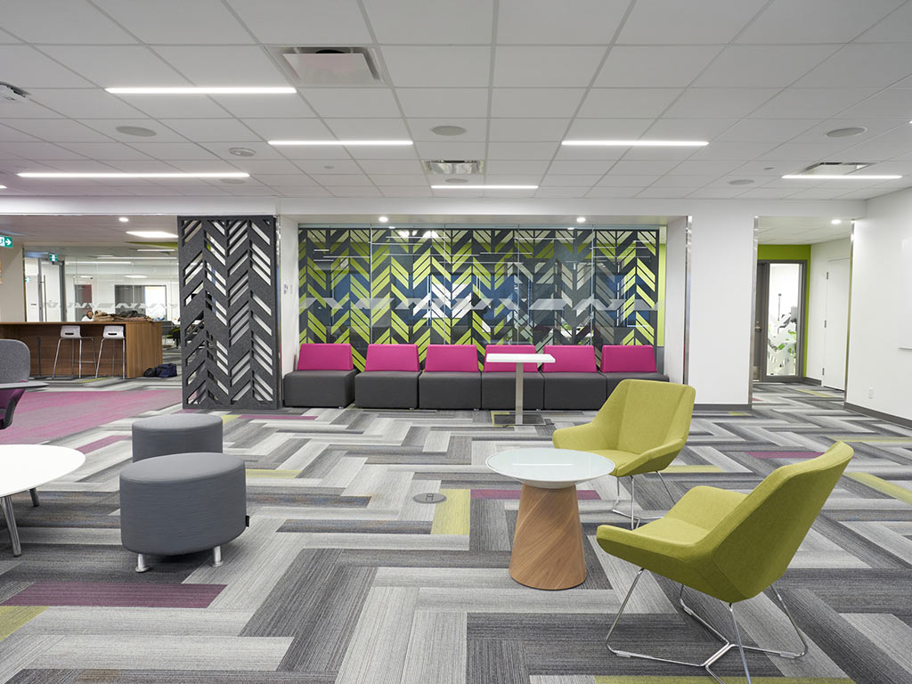 Located in downtown Edmonton, the NorQuest Civic Employees Legacy Tower underwent a $37M renovation, transforming it into a modern space featuring classrooms, labs, study areas, offices, and an innovation centre. This project exemplifies an institutional facility combining teaching and office spaces throughout the tower, as well as gathering areas for students to meet and connect.