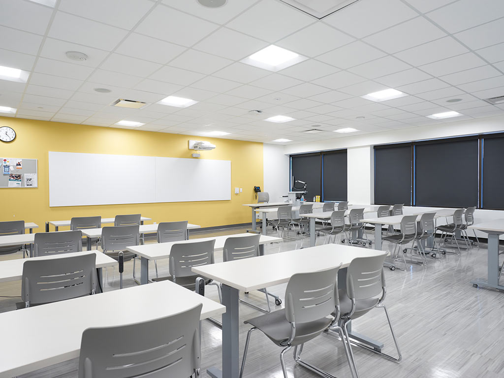 The renovation included upgrades to the power distribution and communication systems, along with the installation of energy-efficient LED lighting. Different lighting types were strategically used to distinguish various spaces and enhance the overall student experience. SMP provided electrical engineering services, including lighting, power distribution, and low-tension systems, all designed with energy efficiency in mind and in accordance with LEED standards and NECB.