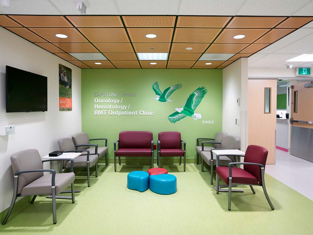 The design emphasized single occupancy patient rooms, noise reduction features, and access to natural light and views of nature resulting in improved healing environment. The project achieved LEED Gold certification.
