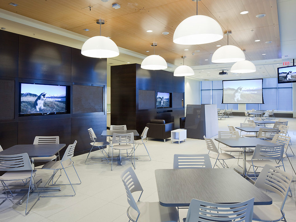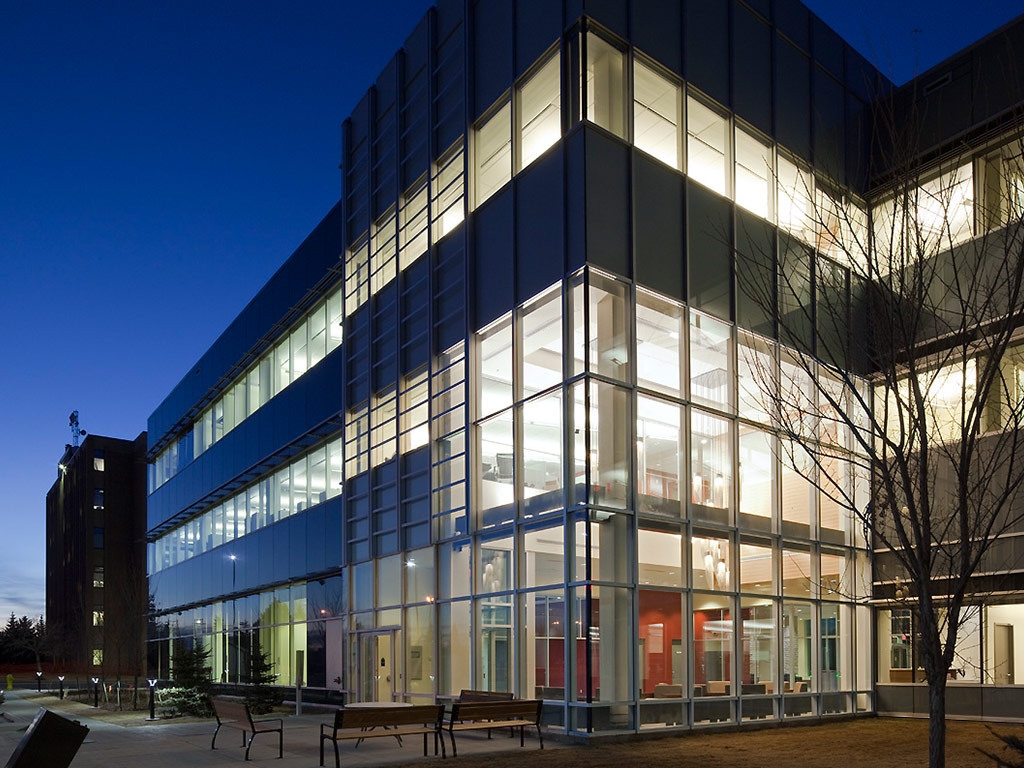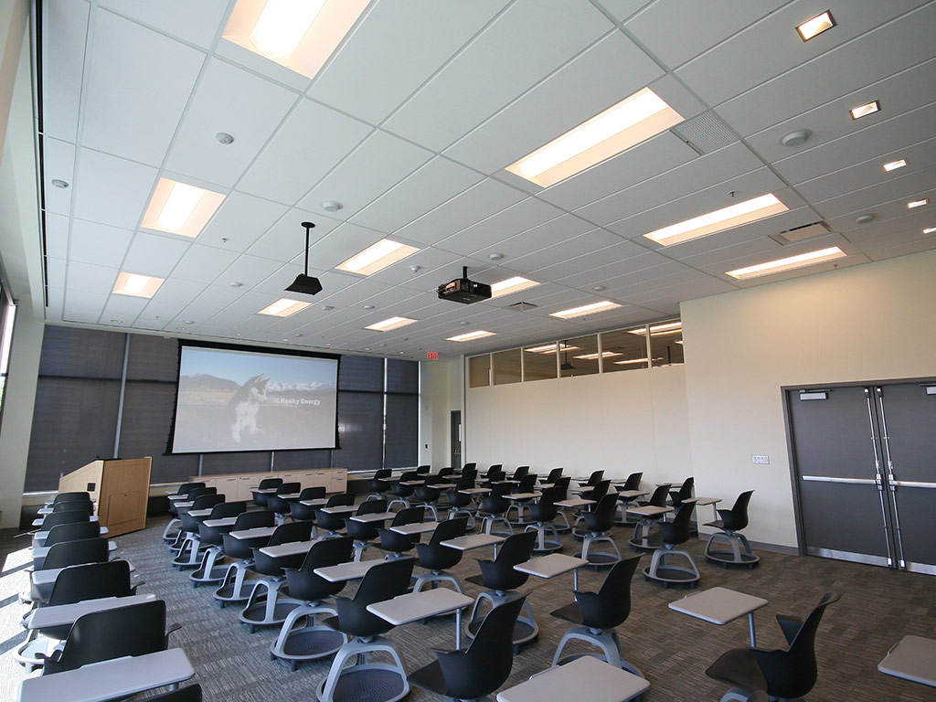Housing staff who provide administration services to Husky’s regional operations, this new 3-storey, 100,000ft2 building includes offices, fitness centre, cafes, and computer room. Scope of work included power, communications, audio/visual, security, life safety, and lighting systems, including daylighting harvesting and LED.